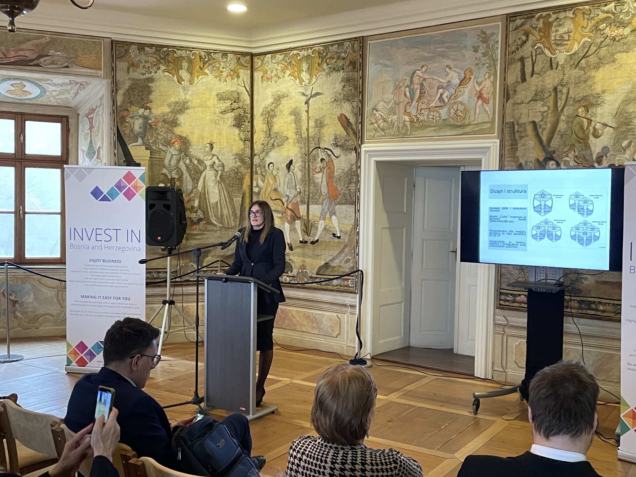 The presentation on behalf of FIPA was delivered by Ms Slavica Korica, Deputy Director, who outlined key macroeconomic indicators, recent foreign direct investment trends and the institutional support framework available to foreign investors. She highlighted Bosnia and Herzegovina’s strategic geographical position, preferential access to regional and EU markets, stable currency regime, competitive tax structure and labour costs, as well as FIPA’s role as a central point of contact providing free and tailored assistance to investors throughout all phases of the investment process.